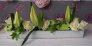qui vous séduira par sa fraîcheur, avec ses roses, son lys blanc, et ses petites décos vertes.